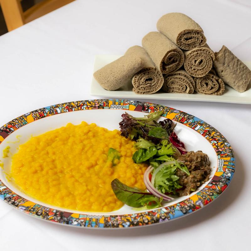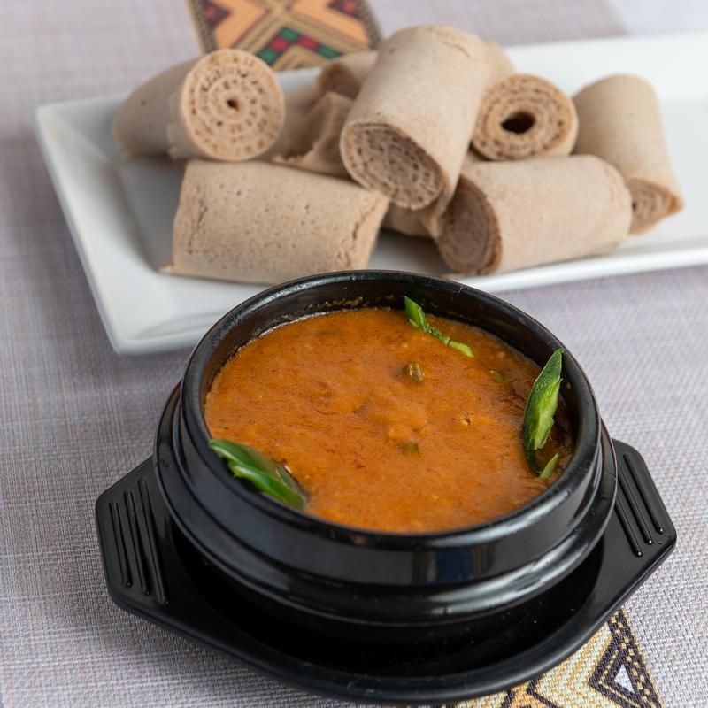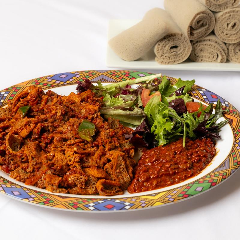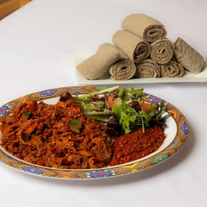 Tender pieces of lamb simmered with spiced berbere sauce.