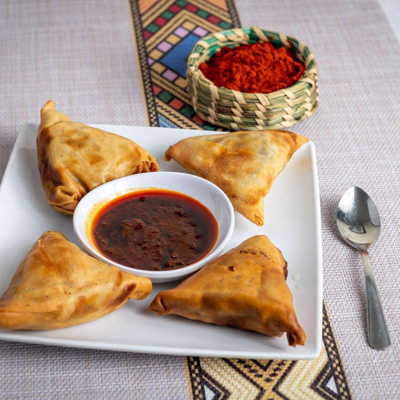 A blend of whole lentils, garlic jalapeno & onion filled in phyllo-dough (3 pieces).