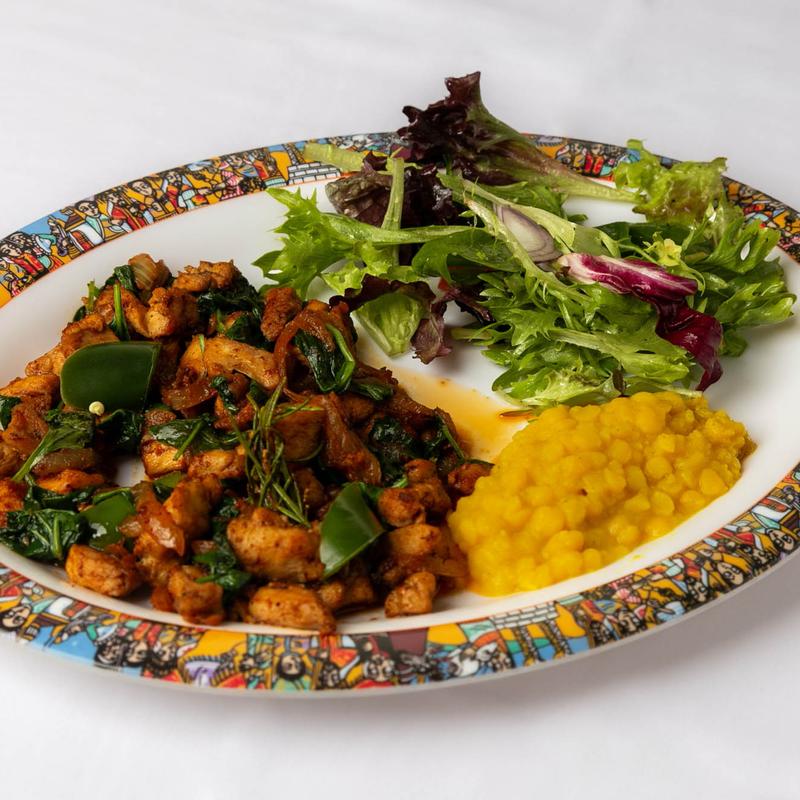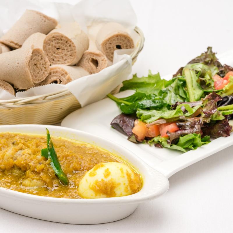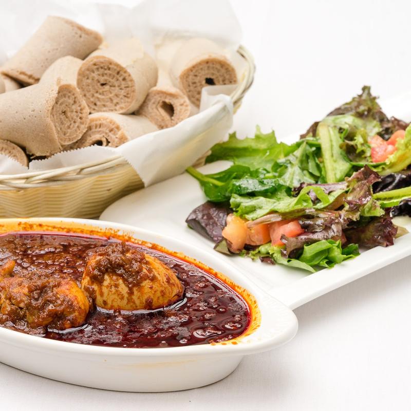 Spicy chicken cooked delicately, with spiced berbere sauce. Served with hard-boiled egg.