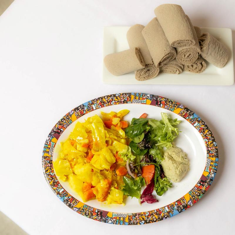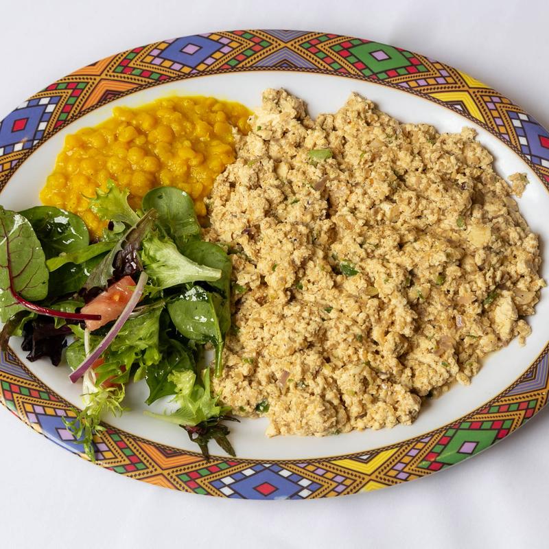 Fresh tomatoes cooked in onion, berbere sauce & spices mixed with chopped injera.