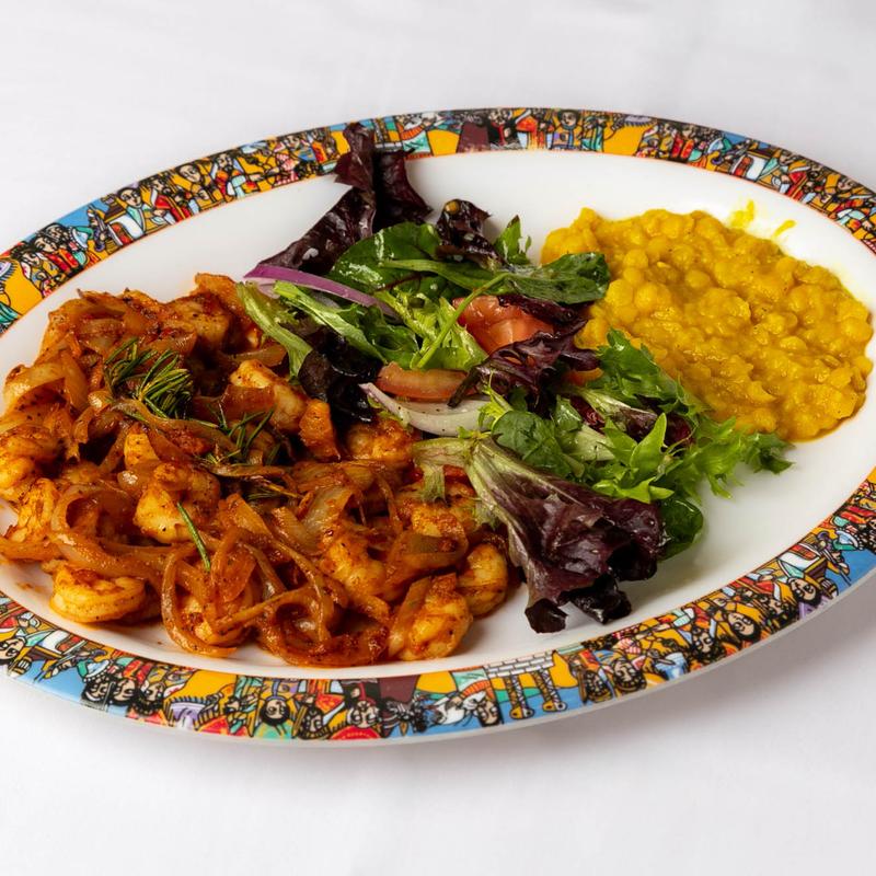Cubes of Tilapia sauteed with onion, garlic, jalapeno, berbere, tomato & Barcote's spices.